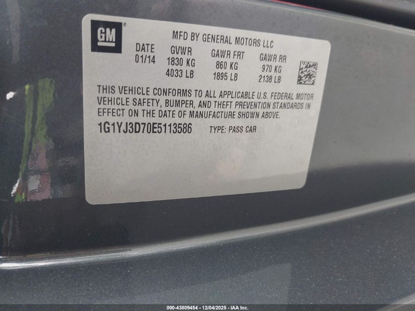 2014 CHEVROLET CORVETTE 2014 року Бензин, 6.2, Задній привід, vin - 1G1YJ3D70E5113586 з США