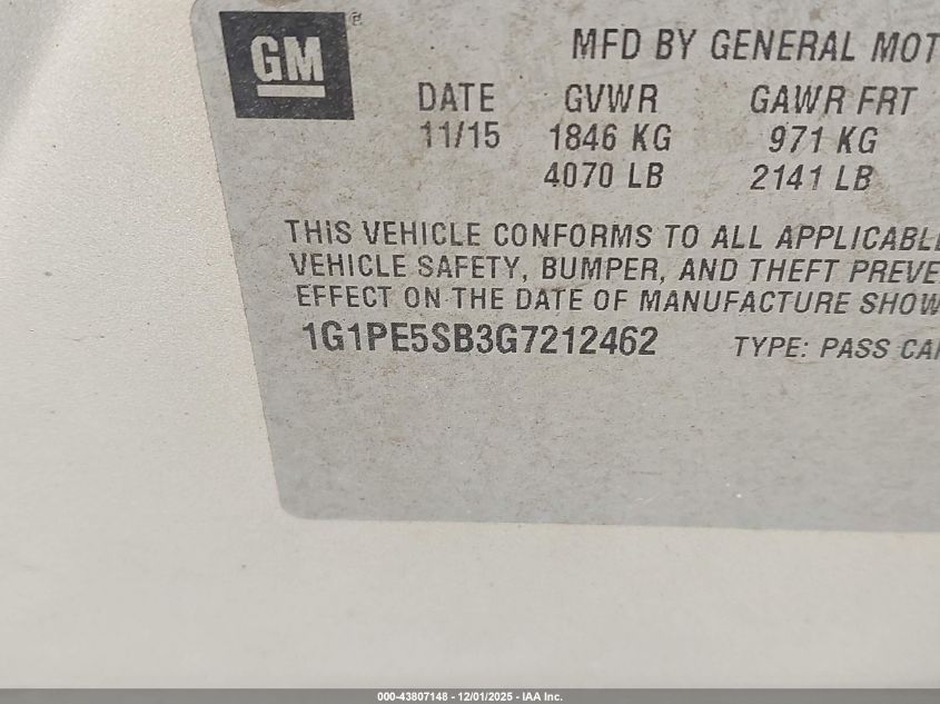 2016 CHEVROLET CRUZE 2016 року Бензин, 1.4, Передній привід, vin - 1G1PE5SB3G7212462 з США