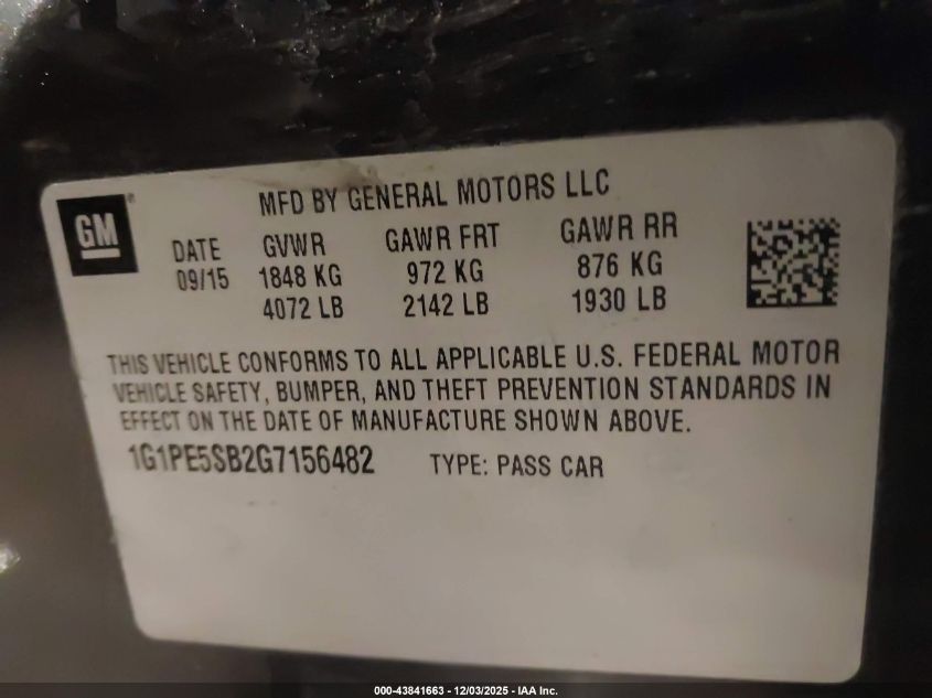 Колір СірийЦиліндри 4Привід Передній привідVIN 1G1PE5SB2G7156482Стан Заводиться та їде (перевірено)Ушкодження Ліва сторона AutoRIA
