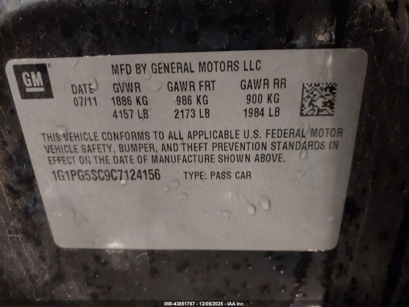 2012 CHEVROLET CRUZE 2012 року Бензин, 1.4, Передній привід, vin - 1G1PG5SC9C7124156 з США