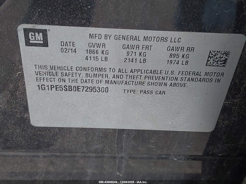 2014 CHEVROLET CRUZE 2014 року Бензин, 1.4, Передній привід, vin - 1G1PE5SB0E7295300 з США