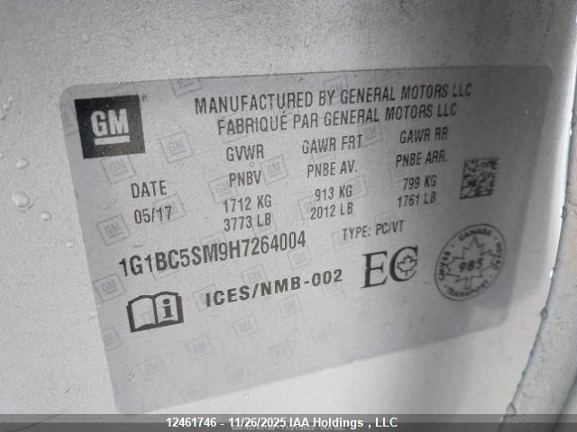 2017 CHEVROLET CRUZE 2017 року Бензин, , Передній привід, vin - 1G1BC5SM9H7264004 з США
