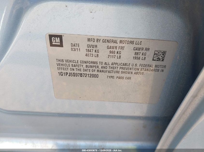 2011 CHEVROLET CRUZE 2011 року Бензин, 1.4, Передній привід, vin - 1G1PJ5S97B7212000 з США