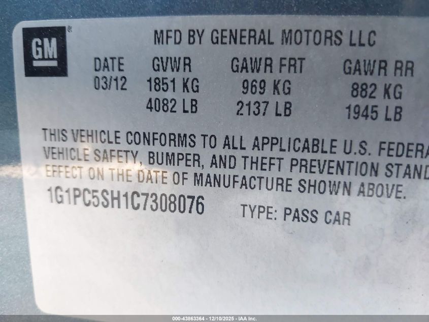 Колір СинійЦиліндри 4Привід Передній привідVIN 1G1PC5SH1C7308076Стан Заводиться та їде (перевірено)Ушкодження Передня і задня AutoRIA