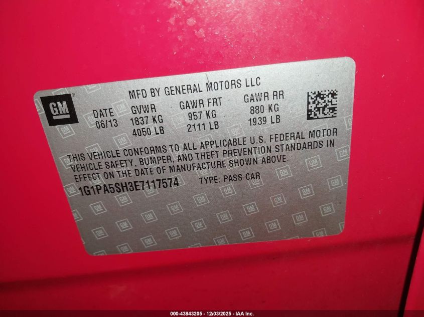 2014 CHEVROLET CRUZE 2014 року Бензин, 1.8, Передній привід, vin - 1G1PA5SH3E7117574 з США