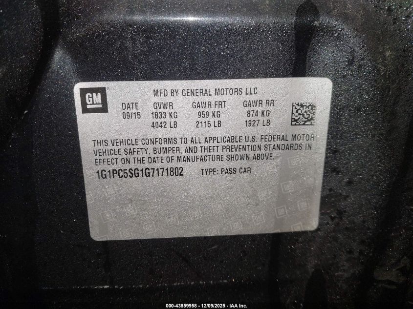 2016 CHEVROLET CRUZE 2016 року Бензин, 1.8, Передній привід, vin - 1G1PC5SG1G7171802 з США
