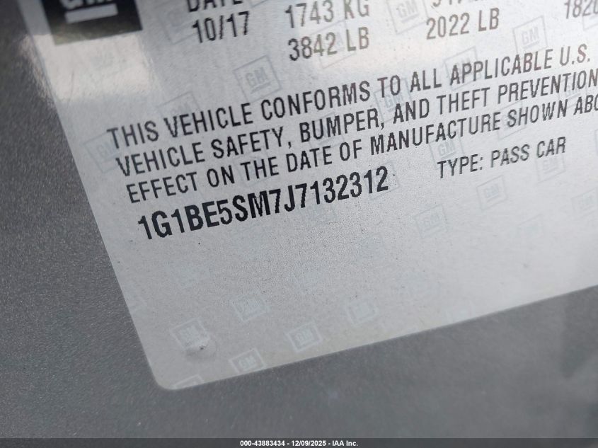 2018 CHEVROLET CRUZE 2018 року Бензин, 1.4, Передній привід, vin - 1G1BE5SM7J7132312 з США