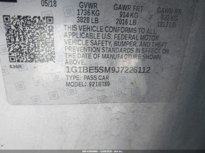 2018 CHEVROLET CRUZE 2018 року Бензин, 1.4, Передній привід, vin - 1G1BE5SM9J7226112 з США