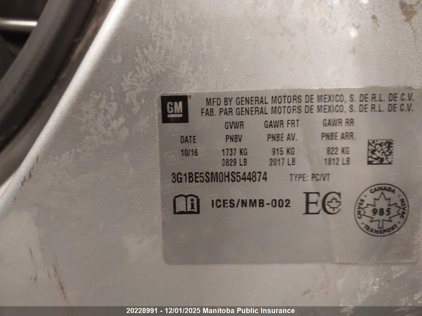 2017 CHEVROLET CRUZE 2017 року Бензин, , Передній привід, vin - 3G1BE5SM0HS544874 з США