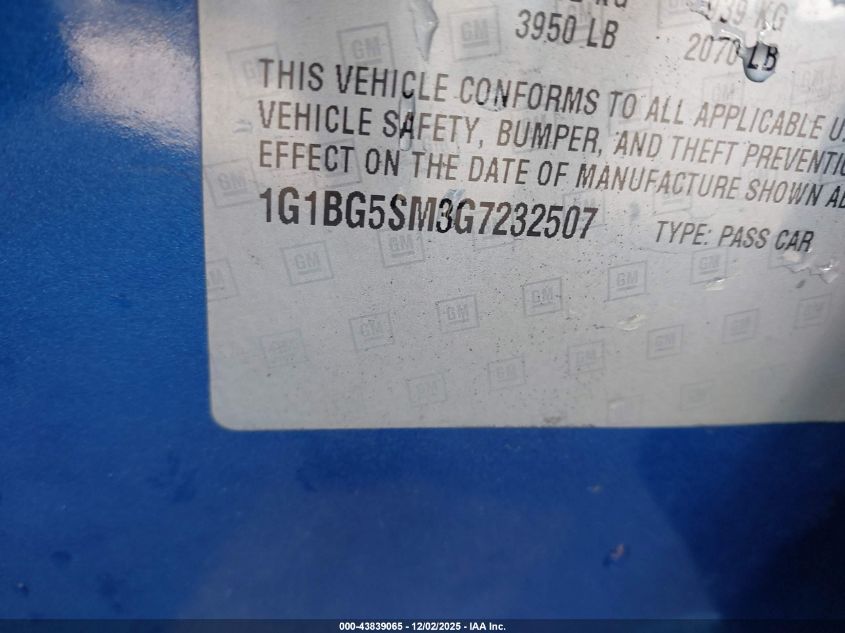 Колір СинійЦиліндри 4Привід Передній привідVIN 1G1BG5SM3G7232507Стан СтаціонарноУшкодження Передня або задня AutoRIA