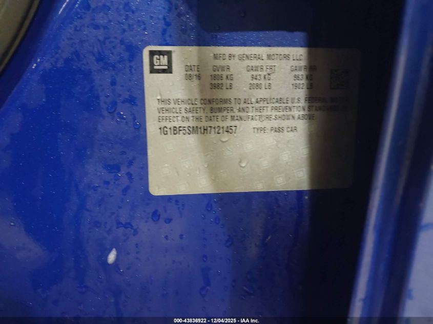 2017 CHEVROLET CRUZE 2017 року Бензин, 1.4, Передній привід, vin - 1G1BF5SM1H7121457 з США