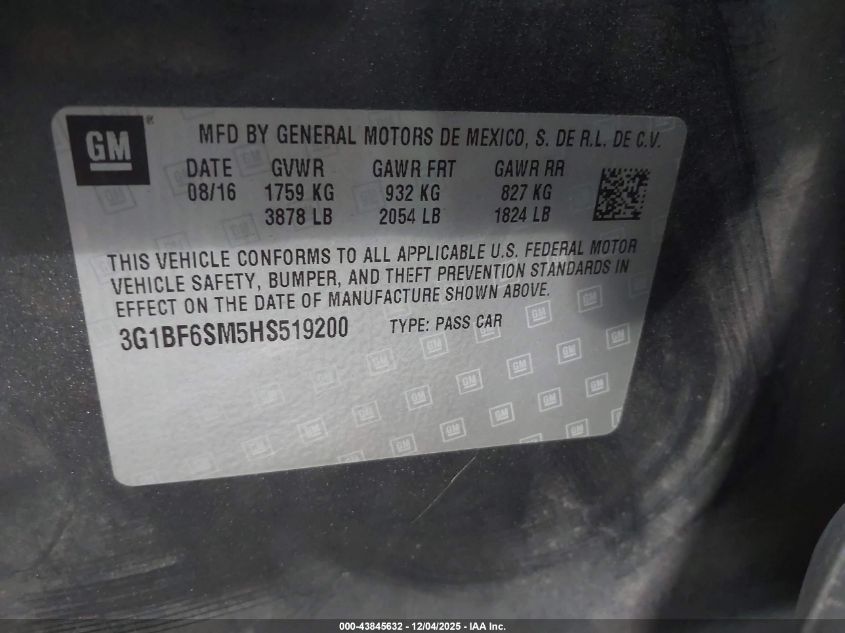 2017 CHEVROLET CRUZE LT