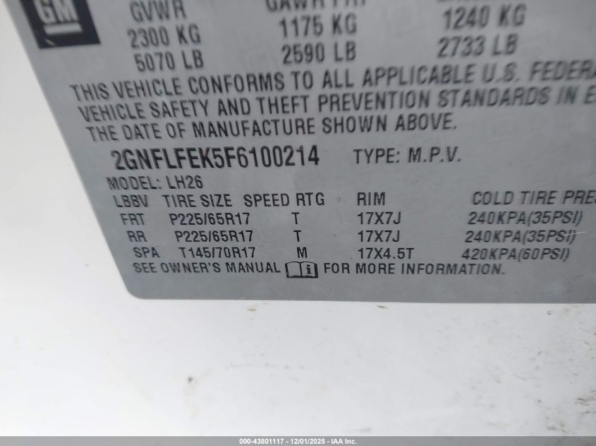Колір БілийЦиліндри 4Привід Повний привідVIN 2GNFLFEK5F6100214Стан Заводиться та їде (перевірено)Ушкодження Передня і задня Дата аукціону 2025-12-16 AutoRIA