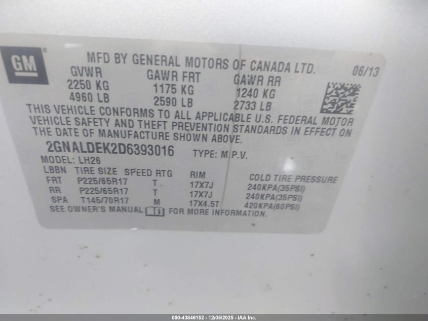 2013 CHEVROLET EQUINOX 2013 року Бензин, 2.4, Передній привід, vin - 2GNALDEK2D6393016 з США