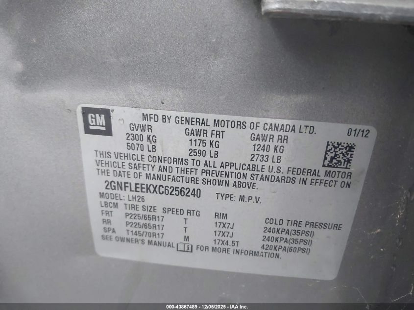 Колір СірийЦиліндри 4Привід Повний привідVIN 2GNFLEEKXC6256240Стан СтаціонарноУшкодження Права сторона AutoRIA