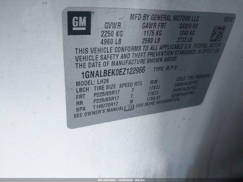 2014 CHEVROLET EQUINOX 2014 року Бензин, 2.4, Передній привід, vin - 1GNALBEK0EZ122966 з США