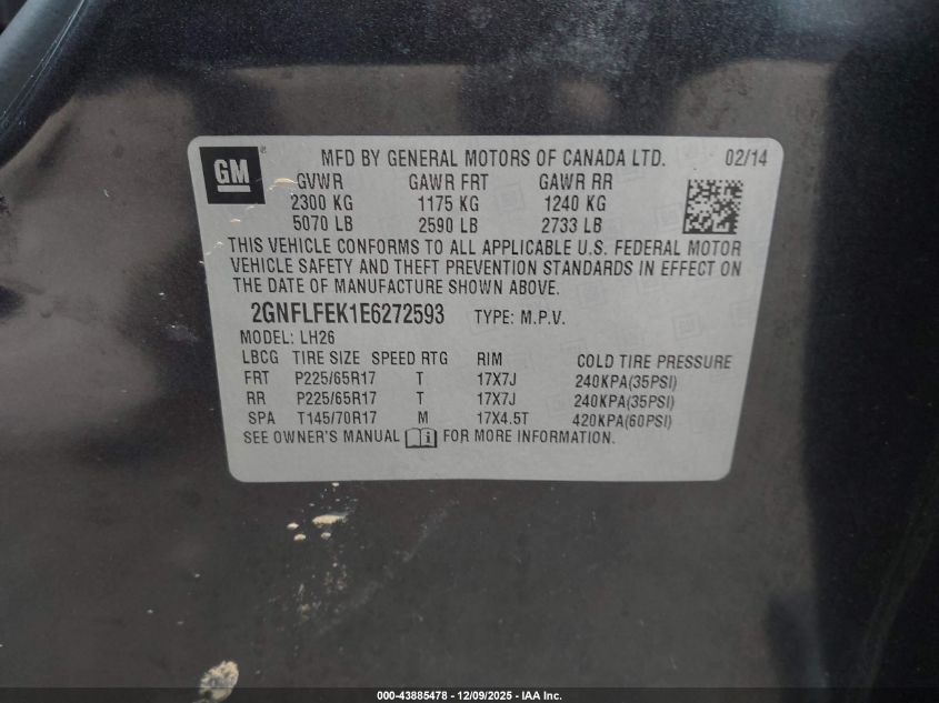 2014 CHEVROLET EQUINOX 2014 року Бензин, 2.4, Повний привід, vin - 2GNFLFEK1E6272593 з США