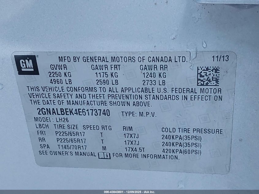 2014 CHEVROLET EQUINOX 2014 року Бензин, 2.4, Передній привід, vin - 2GNALBEK4E6173740 з США