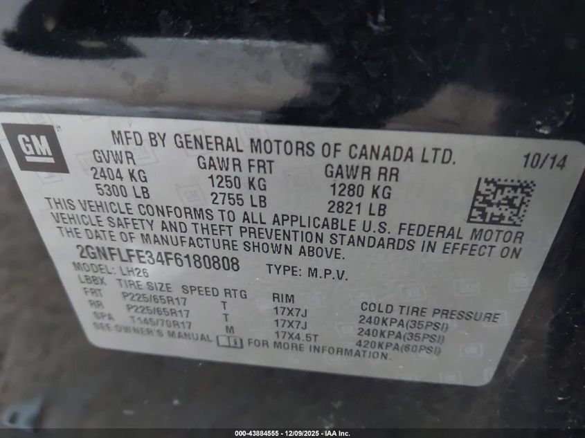 Колір ЧорнийЦиліндри 6Привід Повний привідVIN 2GNFLFE34F6180808Стан Заводиться та їде (перевірено)Ушкодження Задня AutoRIA