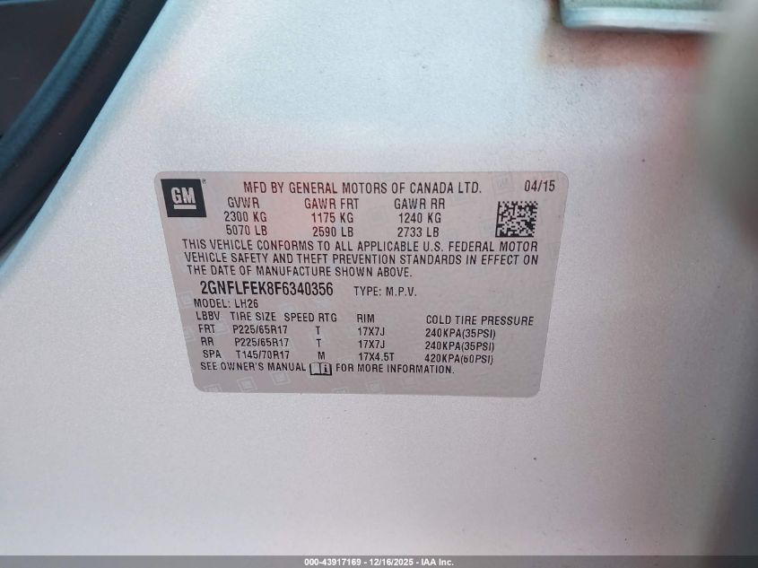 Колір Циліндри 4Привід Повний привідVIN 2GNFLFEK8F6340356Стан НевідомоУшкодження Звичайний знос AutoRIA