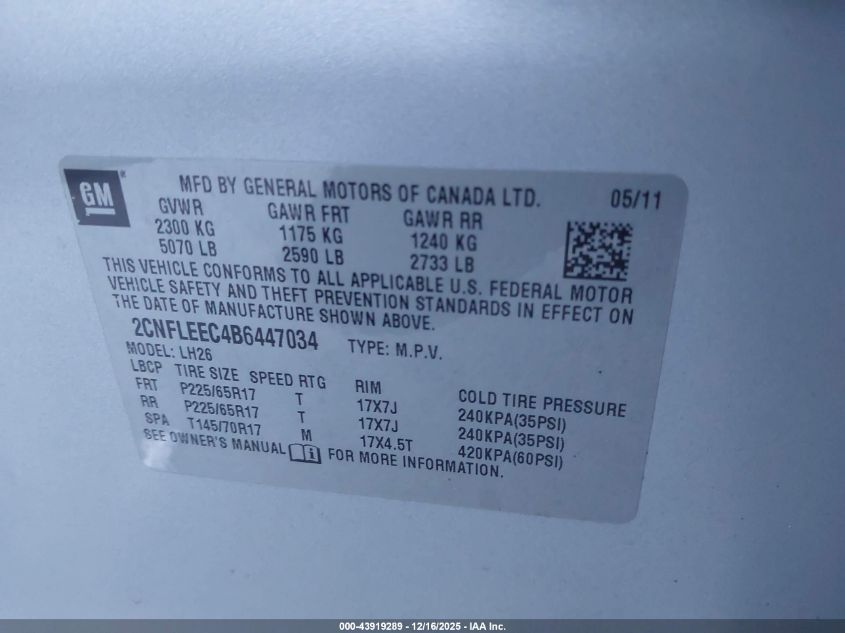 2011 CHEVROLET EQUINOX LT