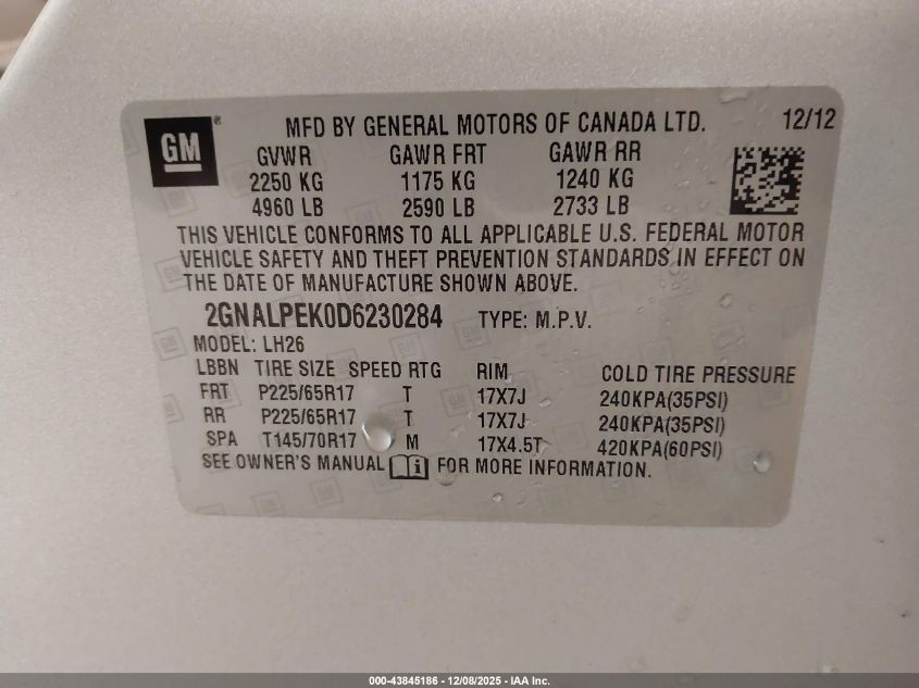 2013 CHEVROLET EQUINOX 2013 року Бензин, 2.4, Передній привід, vin - 2GNALPEK0D6230284 з США