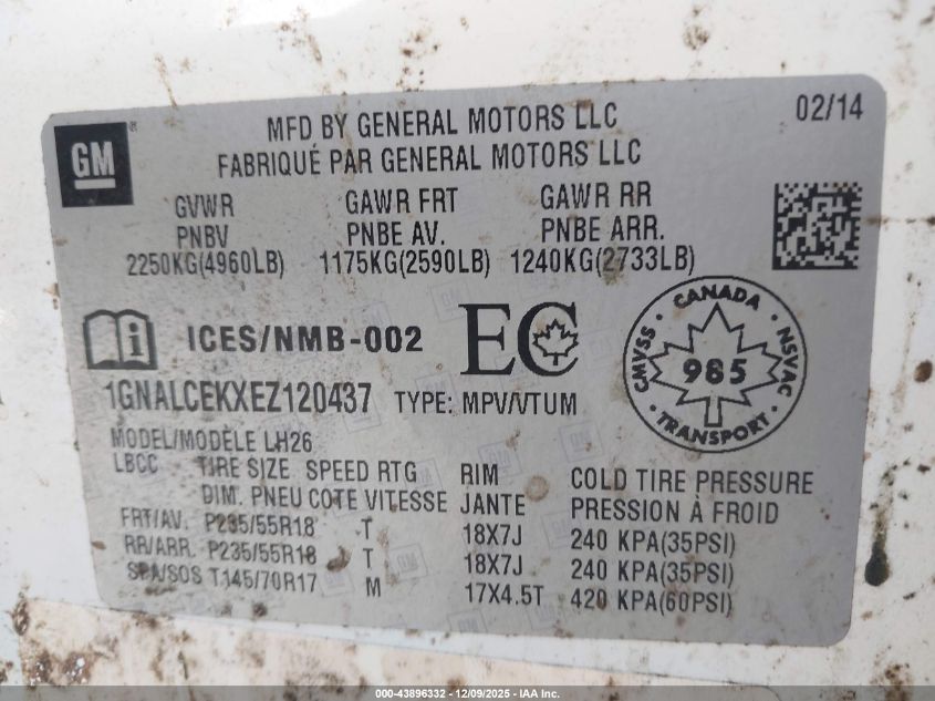 2014 CHEVROLET EQUINOX 2014 року Бензин, 2.4, Передній привід, vin - 1GNALCEKXEZ120437 з США