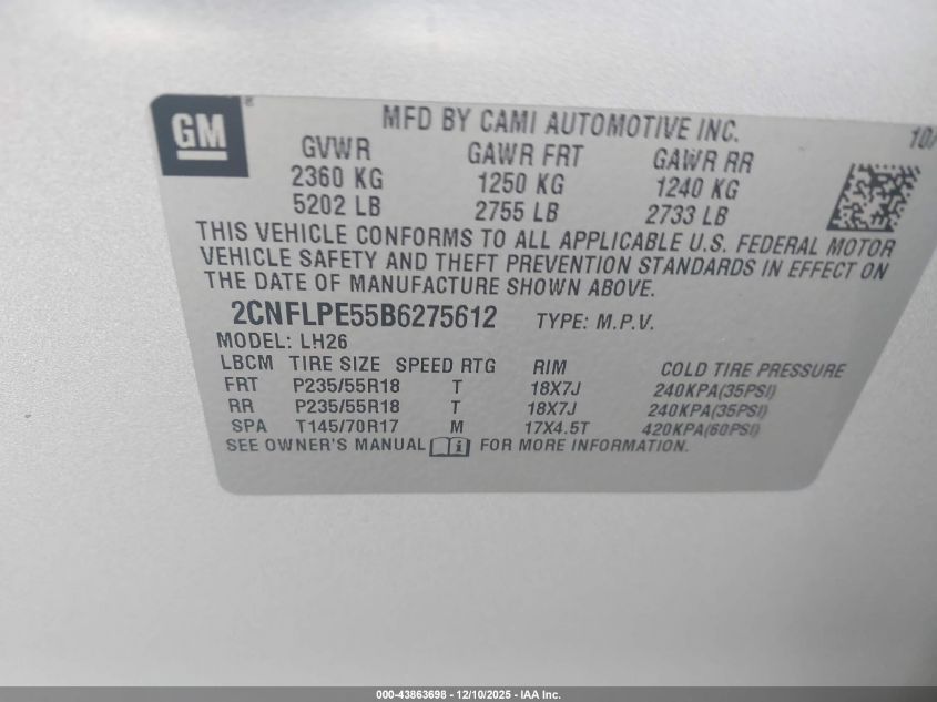 Колір СрібнийЦиліндри 6Привід Передній привідVIN 2CNFLPE55B6275612Стан Заводиться та їде (перевірено)Ушкодження Передня ліва AutoRIA
