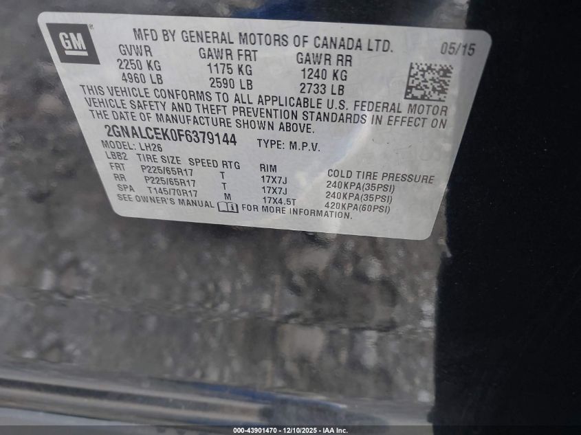 2015 CHEVROLET EQUINOX LT