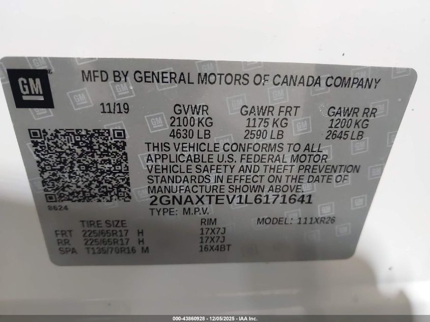 2020 CHEVROLET EQUINOX 2020 року Бензин, 1.5, Повний привід, vin - 2GNAXTEV1L6171641 з США