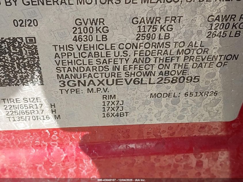 2020 CHEVROLET EQUINOX 2020 року Бензин, 1.5, Повний привід, vin - 3GNAXUEV6LL258095 з США