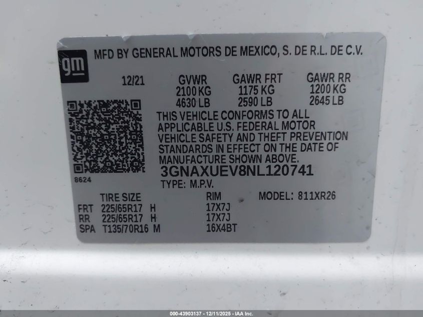 2022 CHEVROLET EQUINOX 2022 року Бензин, 1.5, Повний привід, vin - 3GNAXUEV8NL120741 з США