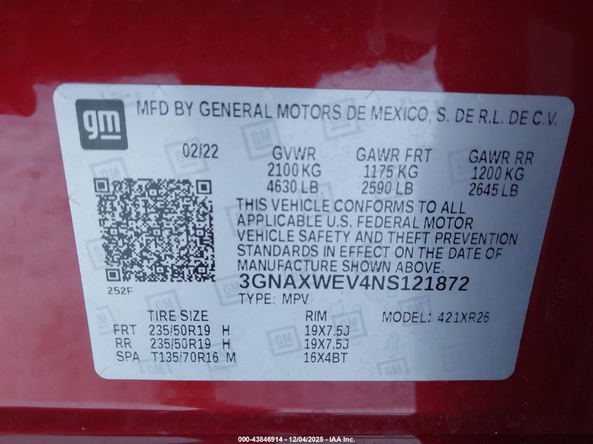 2022 CHEVROLET EQUINOX 2022 року Бензин, 1.5, Повний привід, vin - 3GNAXWEV4NS121872 з США