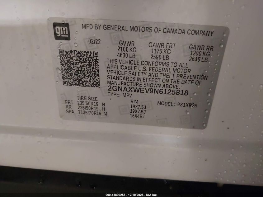 2022 CHEVROLET EQUINOX 2022 року Бензин, 1.5, Повний привід, vin - 2GNAXWEV9N6125818 з США