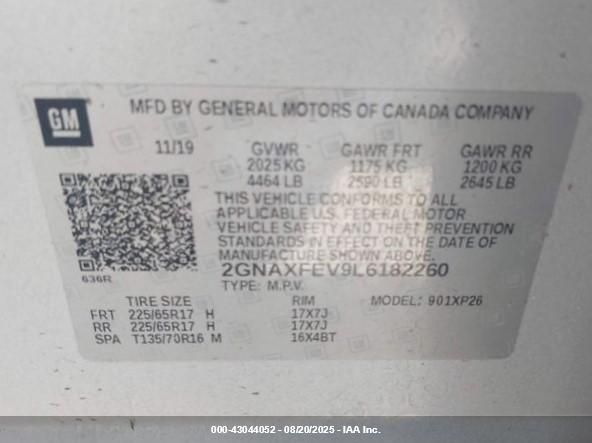 2020 CHEVROLET EQUINOX 2020 року Бензин, 1.5, Передній привід, vin - 2GNAXFEV9L6182260 з США