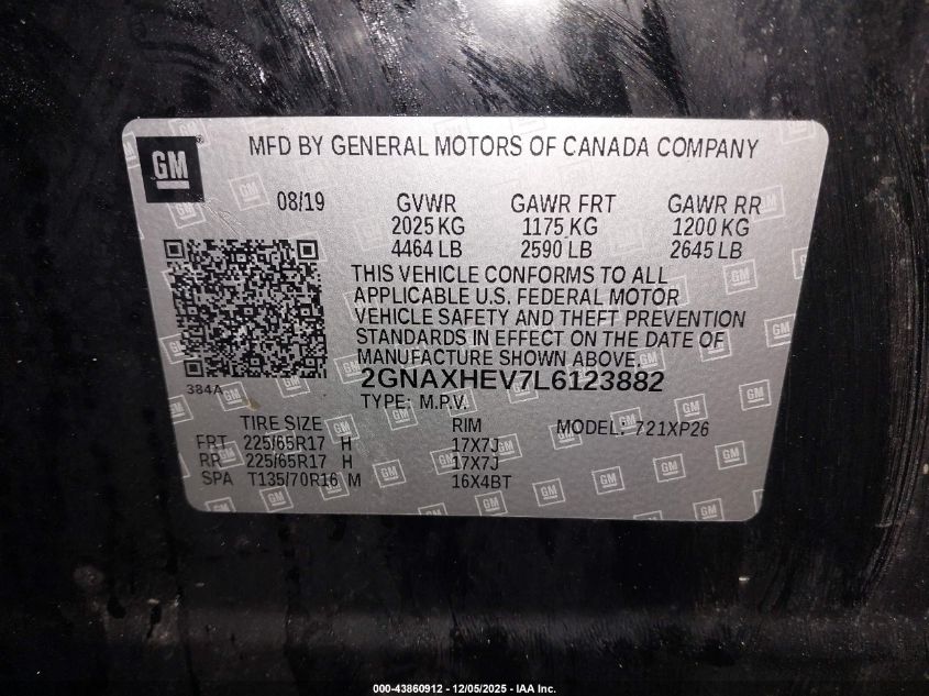2020 CHEVROLET EQUINOX 2020 року Бензин, 1.5, Передній привід, vin - 2GNAXHEV7L6123882 з США