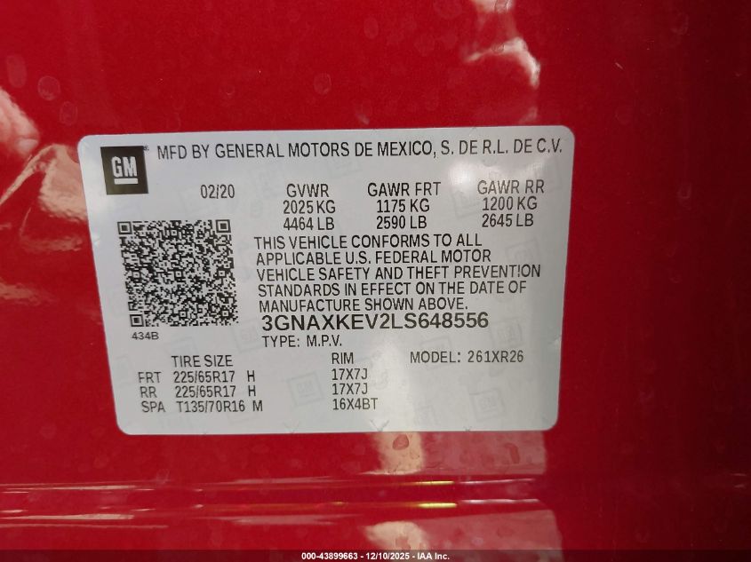 2020 CHEVROLET EQUINOX 2020 року Бензин, 1.5, Передній привід, vin - 3GNAXKEV2LS648556 з США
