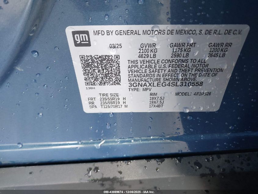 2025 CHEVROLET EQUINOX 2025 року Бензин, 1.5, Передній привід, vin - 3GNAXLEG4SL310558 з США