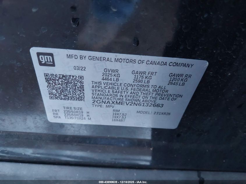 2022 CHEVROLET EQUINOX 2022 року Бензин, 1.5, Передній привід, vin - 2GNAXMEV2N6132663 з США