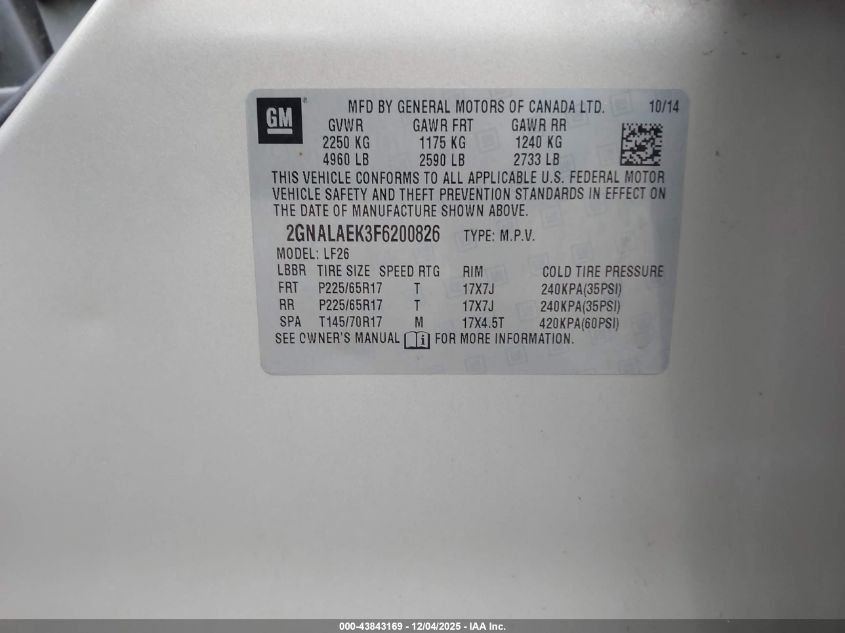 2015 CHEVROLET EQUINOX LT