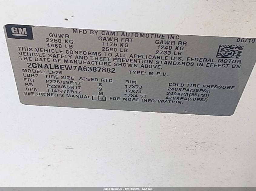 2010 CHEVROLET EQUINOX 2010 року Бензин, 2.4, Передній привід, vin - 2CNALBEW7A6387882 з США