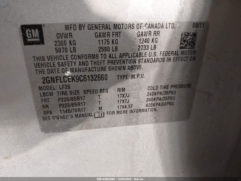 Колір СрібнийЦиліндри 4Привід Повний привідVIN 2GNFLCEK9C6132660Стан Заводиться та їде (перевірено)Ушкодження Передня права AutoRIA