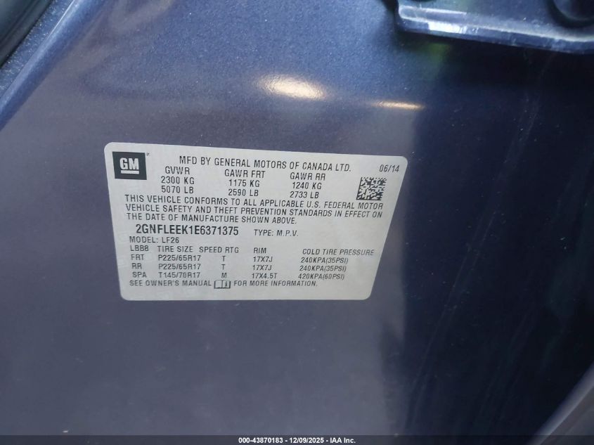 2014 CHEVROLET EQUINOX 2014 року Бензин, 2.4, Повний привід, vin - 2GNFLEEK1E6371375 з США