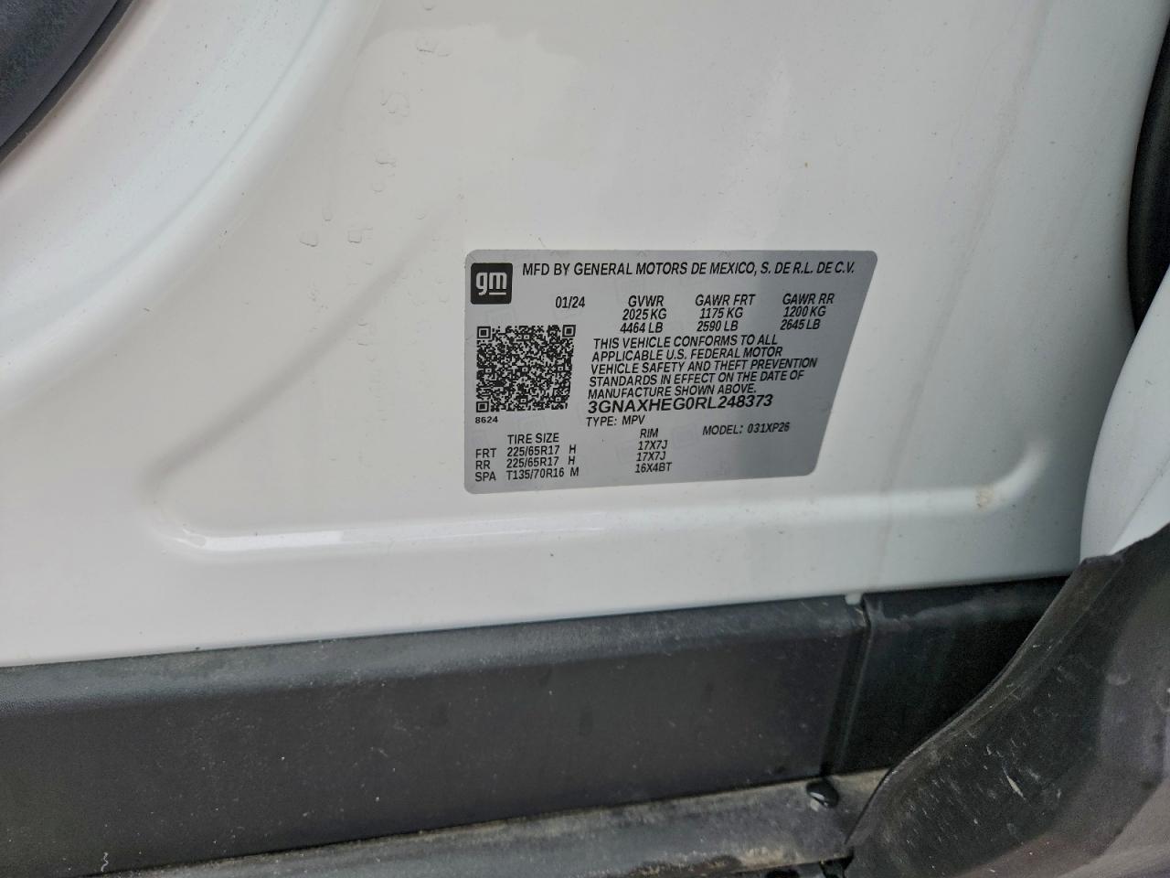 2024 CHEVROLET EQUINOX 2024 року Бензин, 1.5, , vin - 3GNAXHEG0RL248373 з США