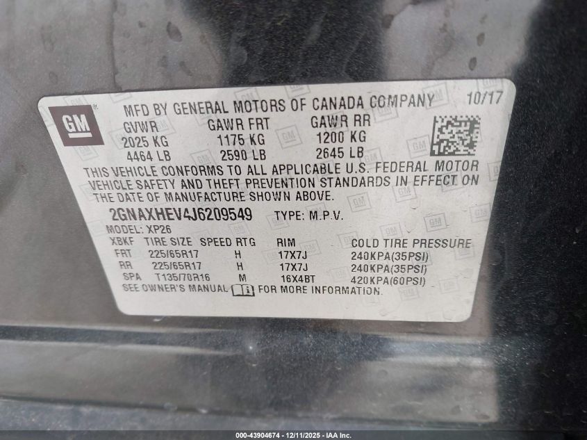 2018 CHEVROLET EQUINOX 2018 року Бензин, 1.5, Передній привід, vin - 2GNAXHEV4J6209549 з США