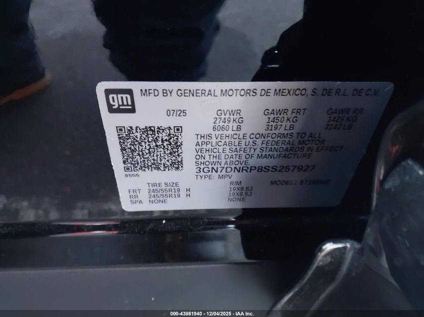 2025 CHEVROLET EQUINOX 2025 року Електричний, 0.0, Передній привід, vin - 3GN7DNRP8SS257927 з США