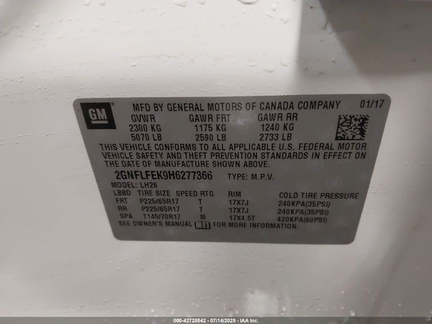 2017 CHEVROLET EQUINOX 2017 року Бензин, 2.4, Повний привід, vin - 2GNFLFEK9H6277366 з США