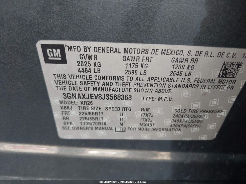 2018 CHEVROLET EQUINOX 2018 року Бензин, 1.5, Передній привід, vin - 3GNAXJEV8JS568363 з США