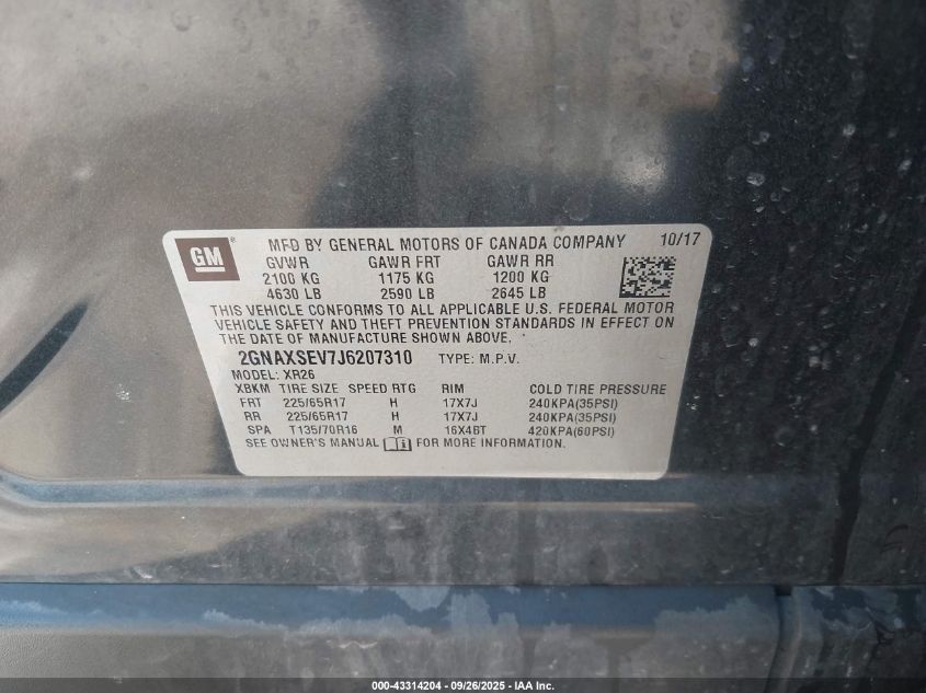 2018 CHEVROLET EQUINOX 2018 року Бензин, 1.5, Повний привід, vin - 2GNAXSEV7J6207310 з США