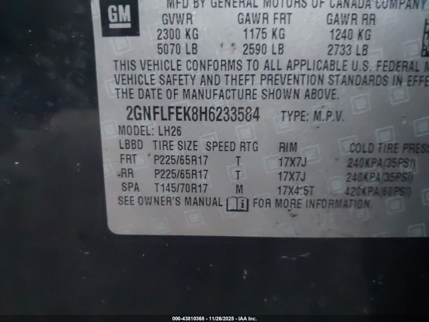 Колір ЧорнийЦиліндри 4Привід Повний привідVIN 2GNFLFEK8H6233584Стан СтаціонарноУшкодження МоторДата аукціону 2025-12-08 AutoRIA